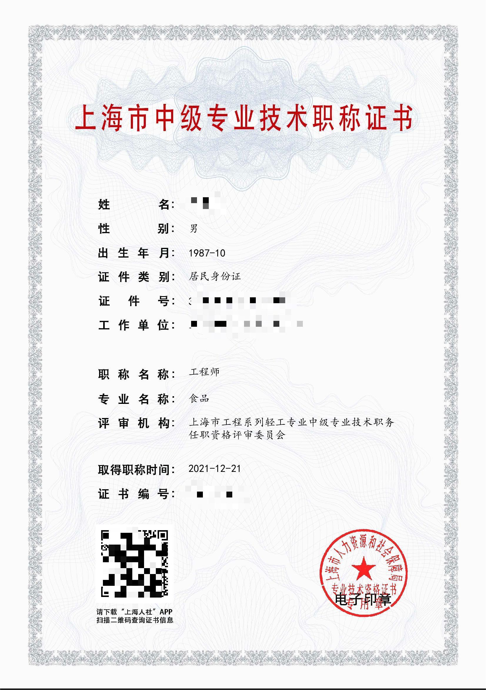 2021年中級職稱(食品)